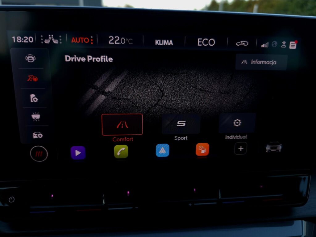 - CUPRA Drive Profile: 6 profili jazdy umożliwiające zmianę reakcji silnka, wspomagania i skrzyni