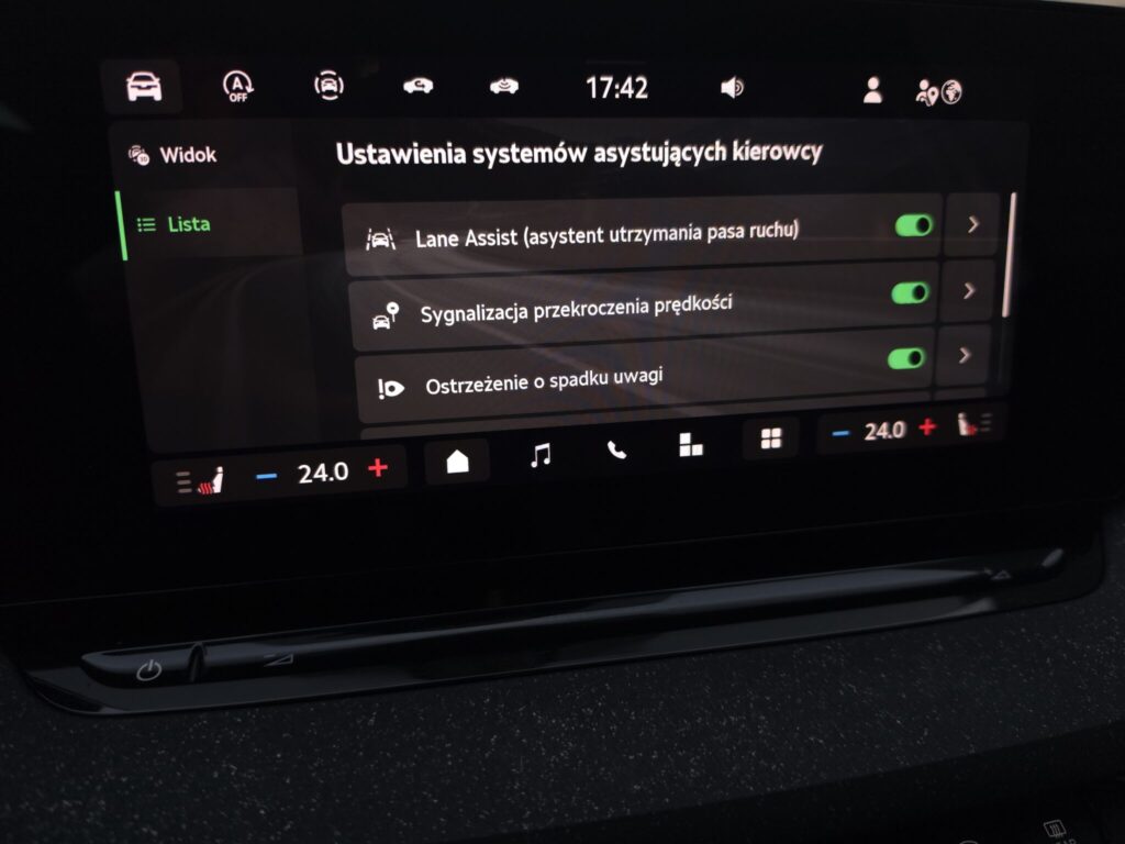 - Lane assist - kontrola zmiany pasa ruchu