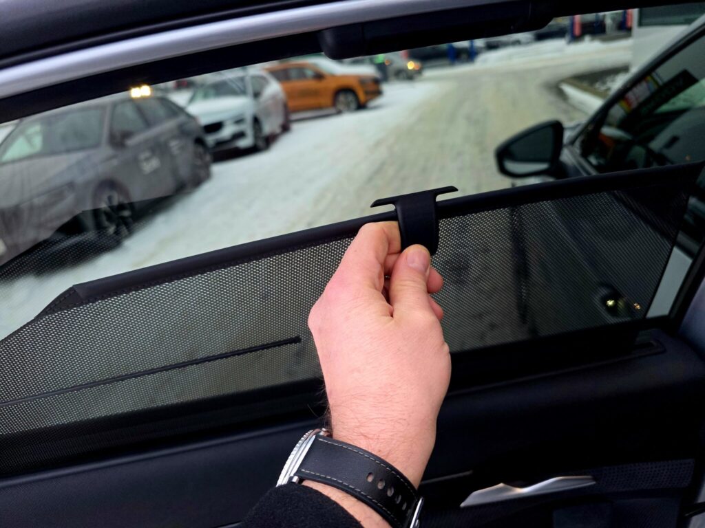 - Rolety na bocznych szybach opuszczane ręcznie