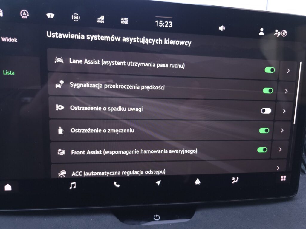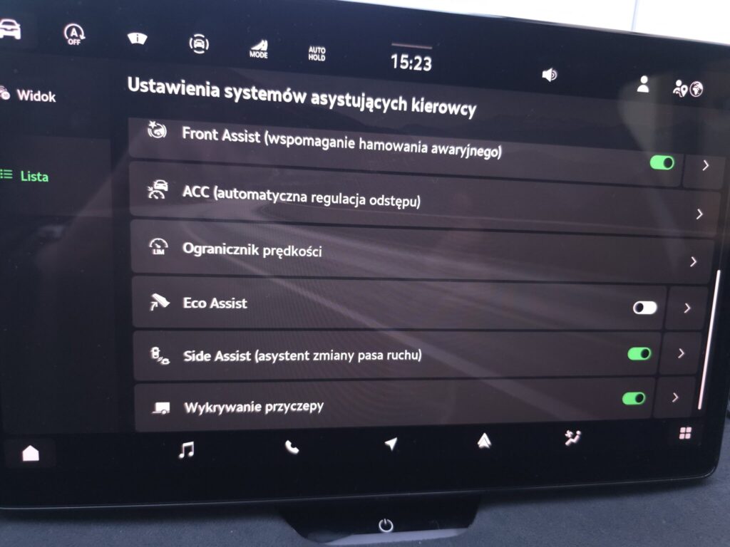 - Lane assist - kontrola zmiany pasa ruchu
