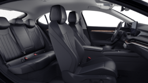 - W pełni elektrycznie regulowane fotele przednie z funkcją pamięci, wentylacją, zaawansowanym masażem (8 opcji), pełną regulacją w odcinku lędźwiowym, funkcją Smart Comfort Entry (fotele przednie przesuwają się przód/tył 10 cm przy otwarciu drzwi, by ułatwić wsiadanie i wysiadanie) oraz wysuwanym podparcie pod uda. Funkcja Clima Balance – autoamatyczne dostosowywanie wentylacji/podgrzewania foteli do temperatury i wilgotności